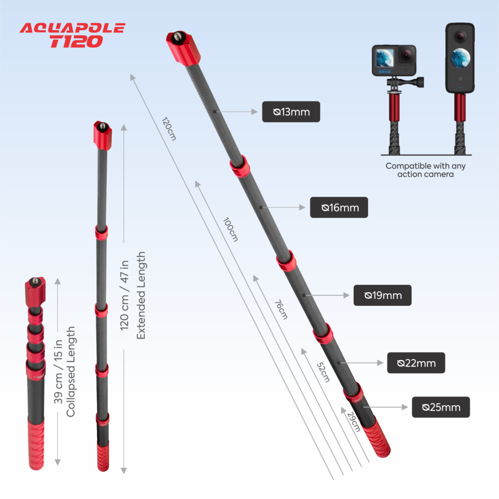 Precision engineered with unmatched performance & safety, Aquapole floats all action cams