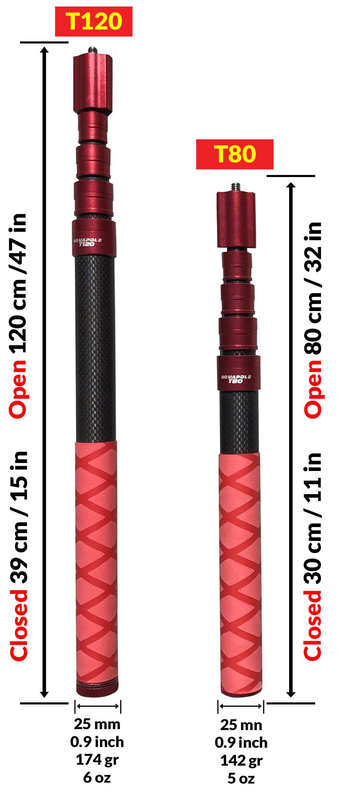 AQUAPOLE T120 & T80 carbon telescopic poles